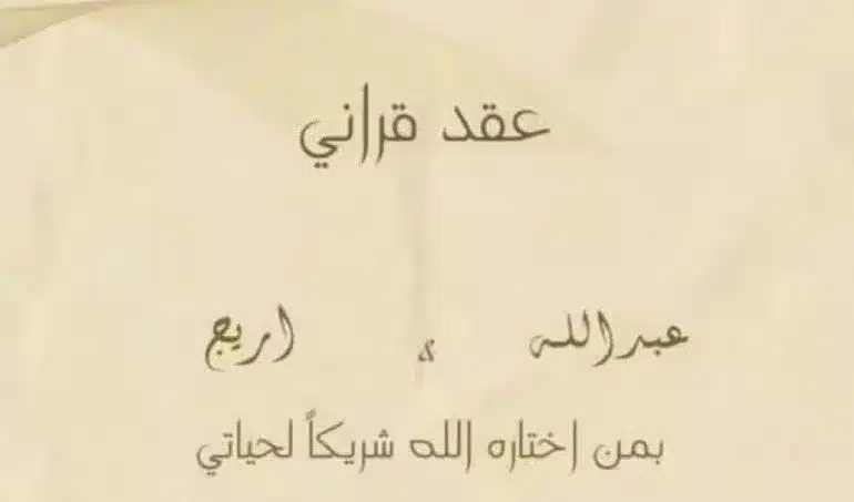 وعقد أمس الجمعة الموافق الثالث من الشهر الميلادي الجاري، حفل زفاف اريج الاحمري وعبدالله الودعاني، وسط أجواء عائلة في أحدي قاعات المناسبات في المملكة العربية السعودية، حيث شاركت العروس صورة من برقي عقد القران على حسابها الشخصي بموقع التواصل الاجتماعي لتبادل الفيديوهات والصور انستجرم.