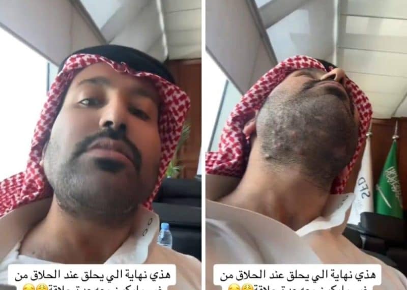 وعلّق الشاب على الفيديو قائلاً: “هذه هي نهاية من يحلق عند الحلاق دون أن يحضر معه أدواته الخاصة.”