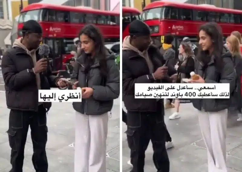 أثار مقطع فيديو تم تداوله على مواقع التواصل الاجتماعي ضجة واسعة، يظهر فيه شاب بريطاني وهو يعرض على فتاة خليجية الإفطار في نهار رمضان مقابل الحصول على هاتف آيفون ومبلغ 400 باوند.